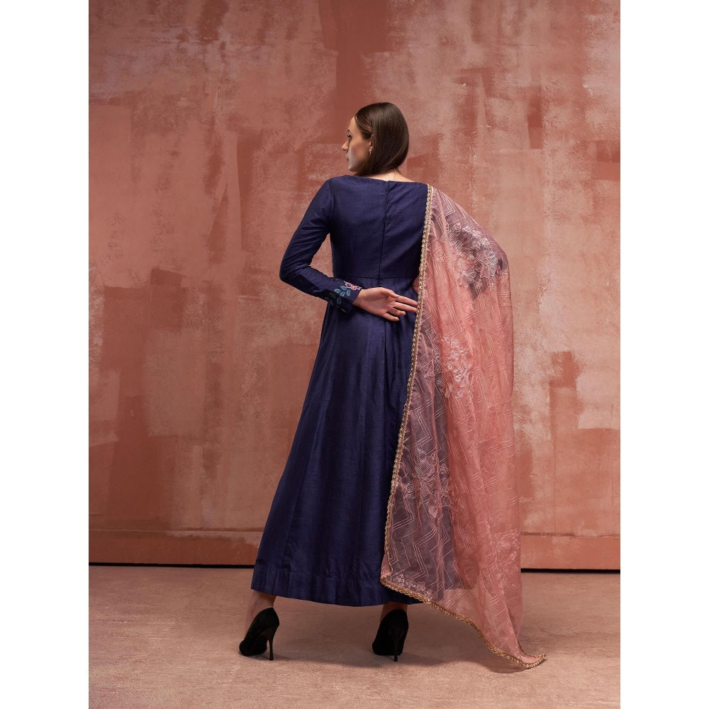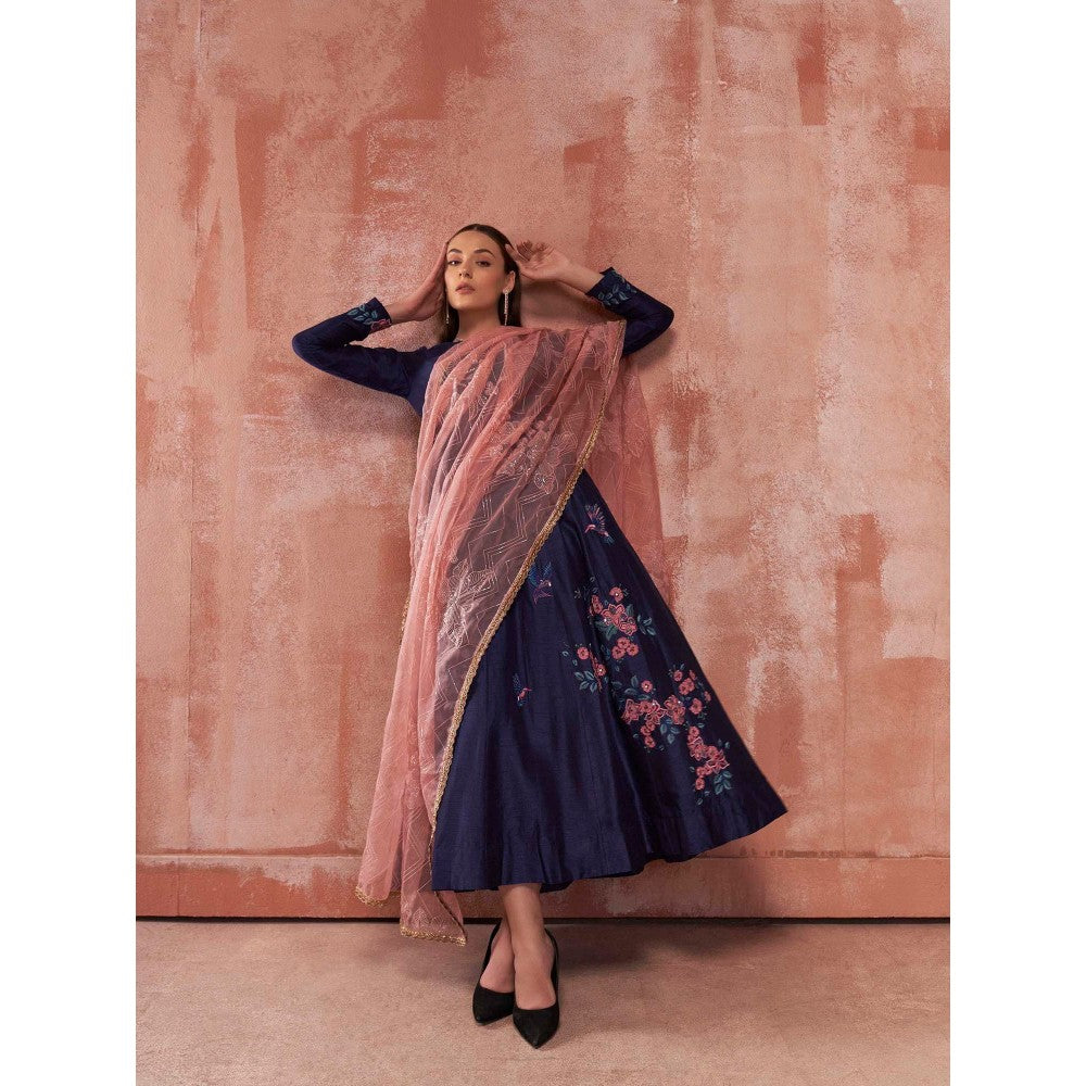 Suruchi Parakh Womens Navy Blue Embellished Anarkali Kurta and Dupatta (Set of 2)