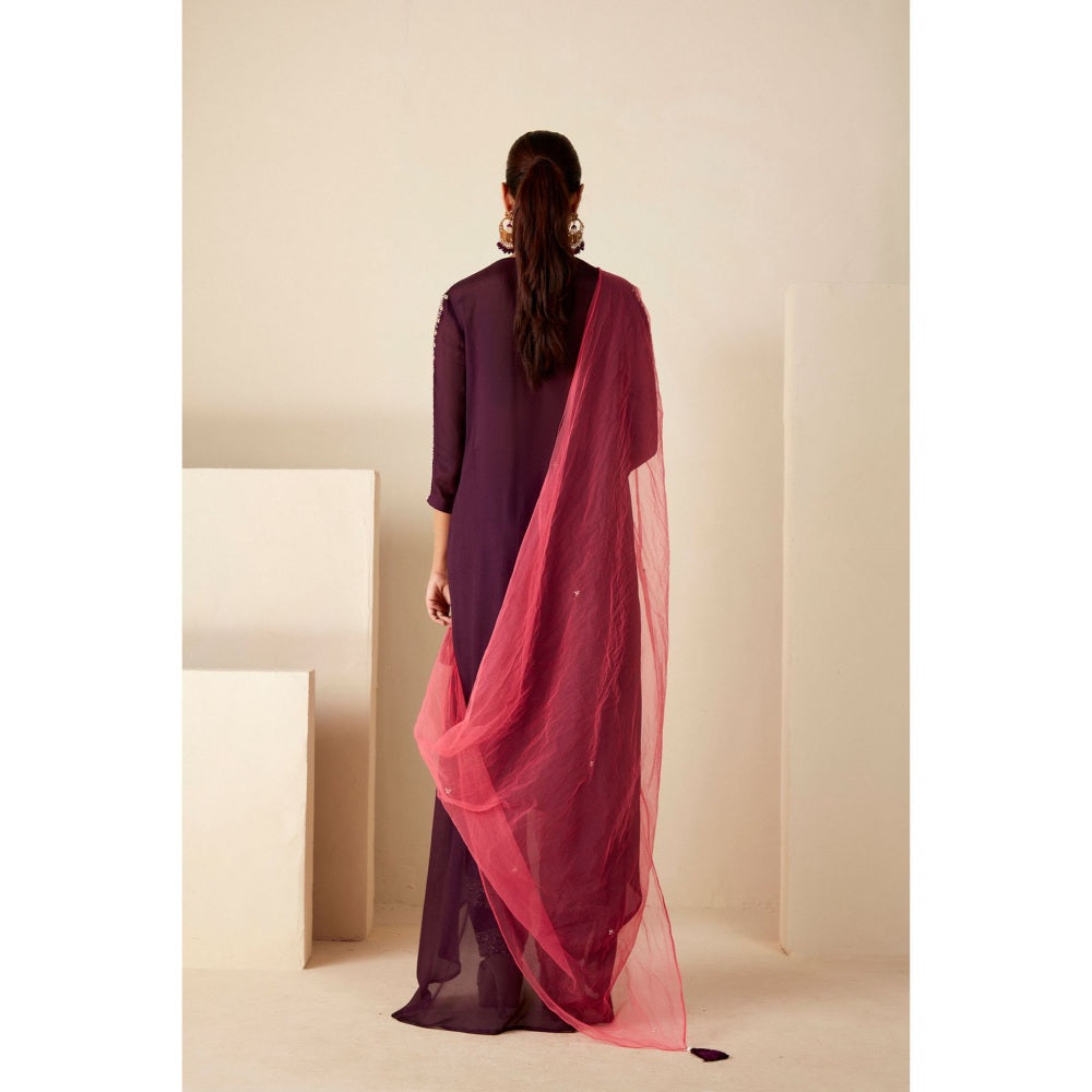 Suruchi Parakh Womens Wine Kurta with Bustier and Pant Dupatta (Set of 4)