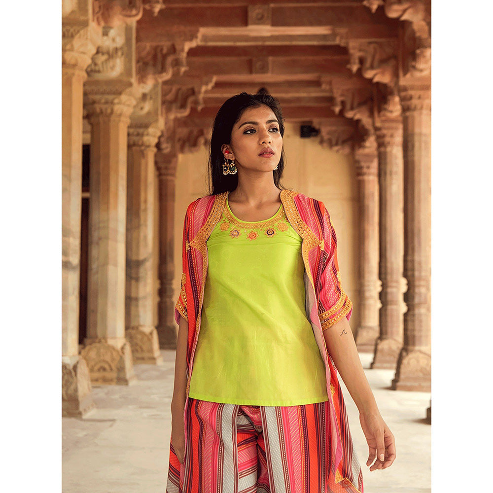 Swati Vijaivargie Mela Striped Dhoti Pant with Cape and Top (Set of 3)