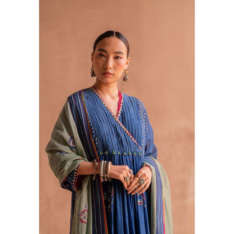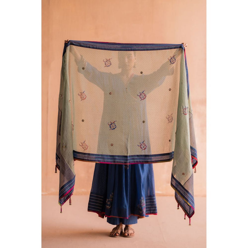 SWATTI KAPOOR Firoza Green Hand Block Printed with Tassels Dupatta