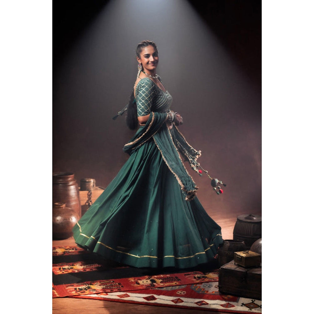 Taraasi Green Mulmul Cotton Crinkled Dupatta