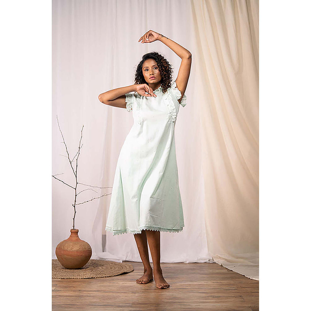 Sunbeam' Mint Green Mulmul Cotton Dress