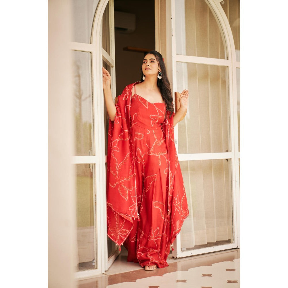 The Clothing Therapy Tomato Red Jumpsuit with Cape