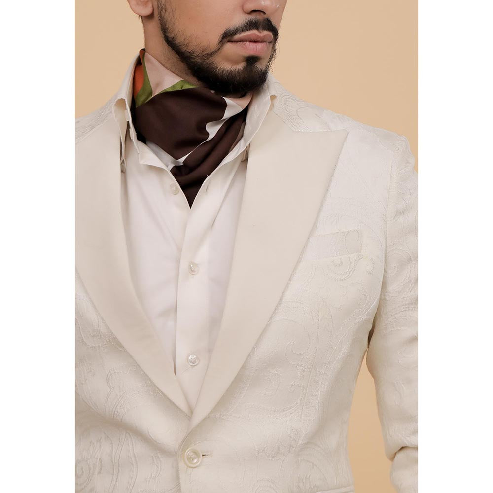 Description : Our elegant pocket square, crafted from premium quality silk twill fabric in a classic brown color has a unique half-circle pattern that adds a touch of modern sophistication to any outfit, while the sumptuous silk material drapes elegantly in your pocket.