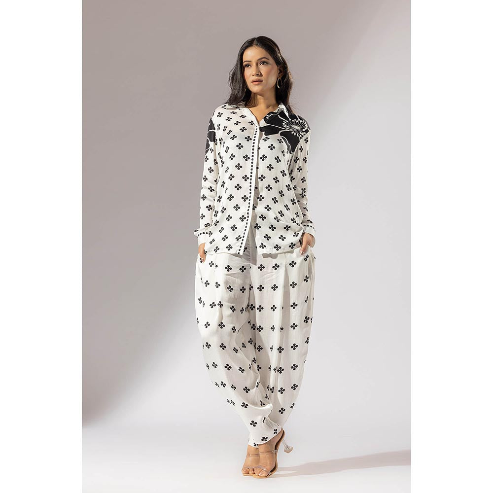 Description : Inspired By The Playful Elegance Of Tiffany-Style Art, This Pearly Ivory Co-Ord Set Features A Gorgeous Blend Of Floral and Geometric Patterns. With Its Relaxed Fit and Balloon-Leg Pants, It's The Perfect Embodiment Of Effortless Chic for Any Adventure.
