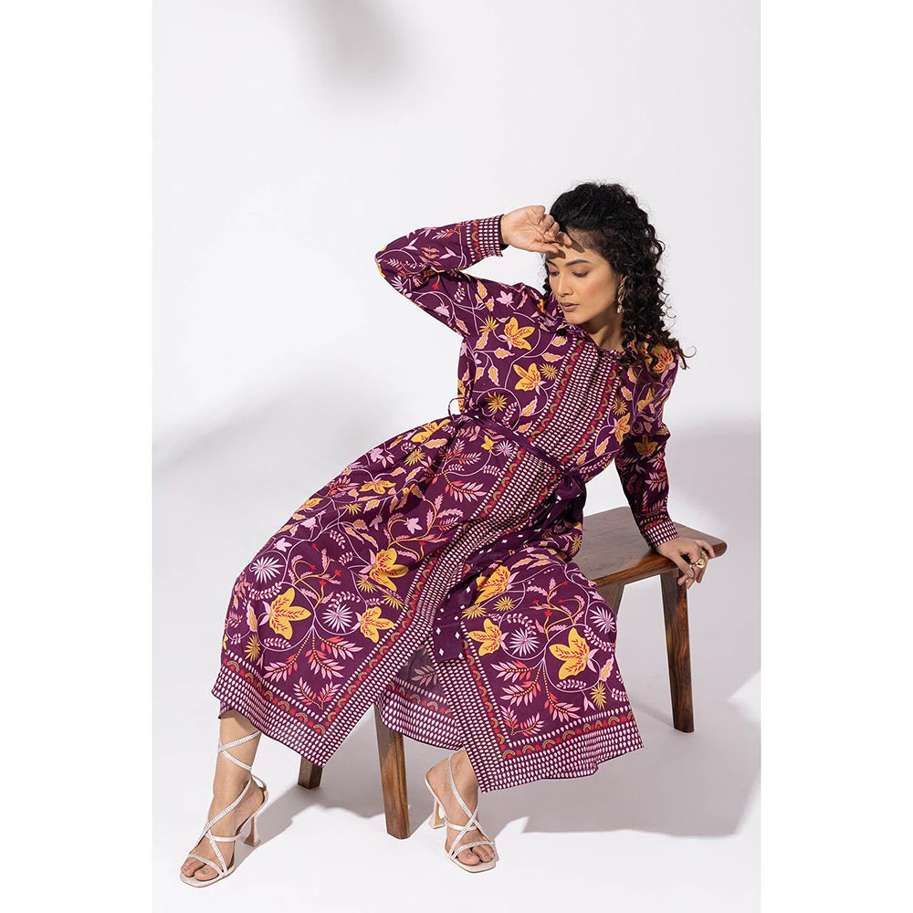 Thee Modern Roots Muse Purple Shirt Dress with Belt (Set of 2)