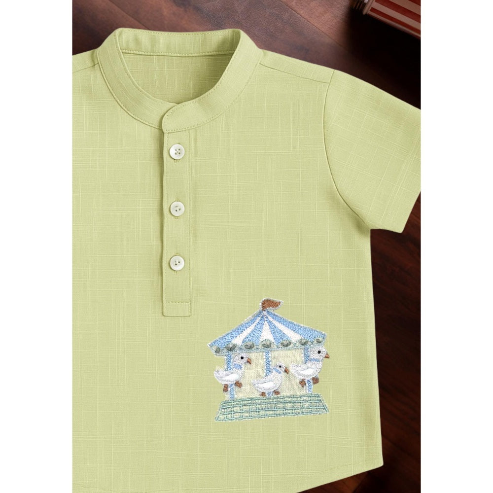 Description : Whimsical charm. A pastel green shirt with carousel and bunting embroidery, designed to bring joy and playfulness to your little one s wardrobe.