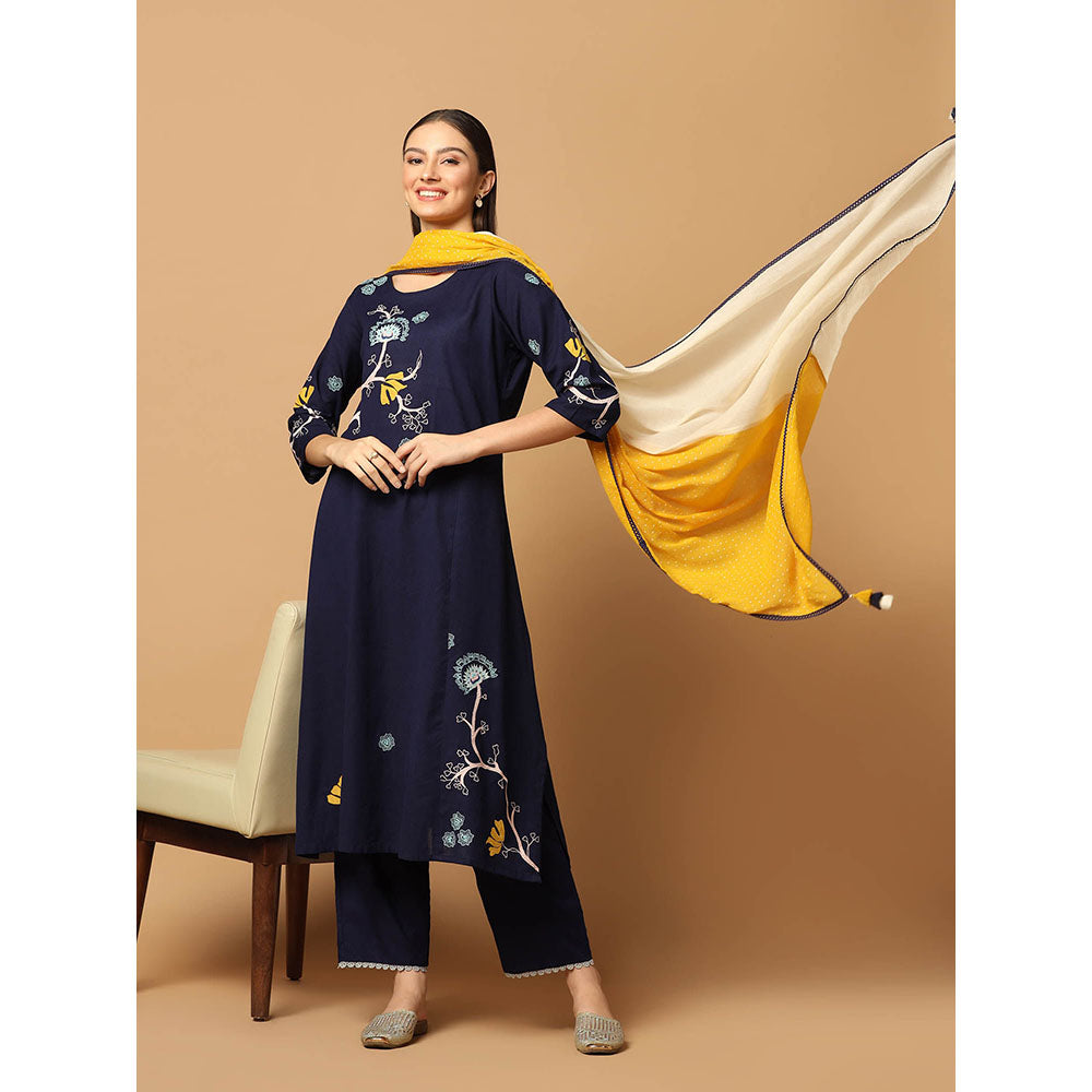 Navy Blue Kurta with Pant and Dupatta (Set of 3)