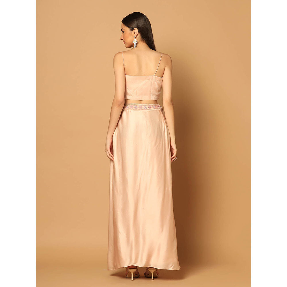 "Two Sisters" by Gyans Peach Embroidered Cape with Skirt and Blouse (Set of 3)