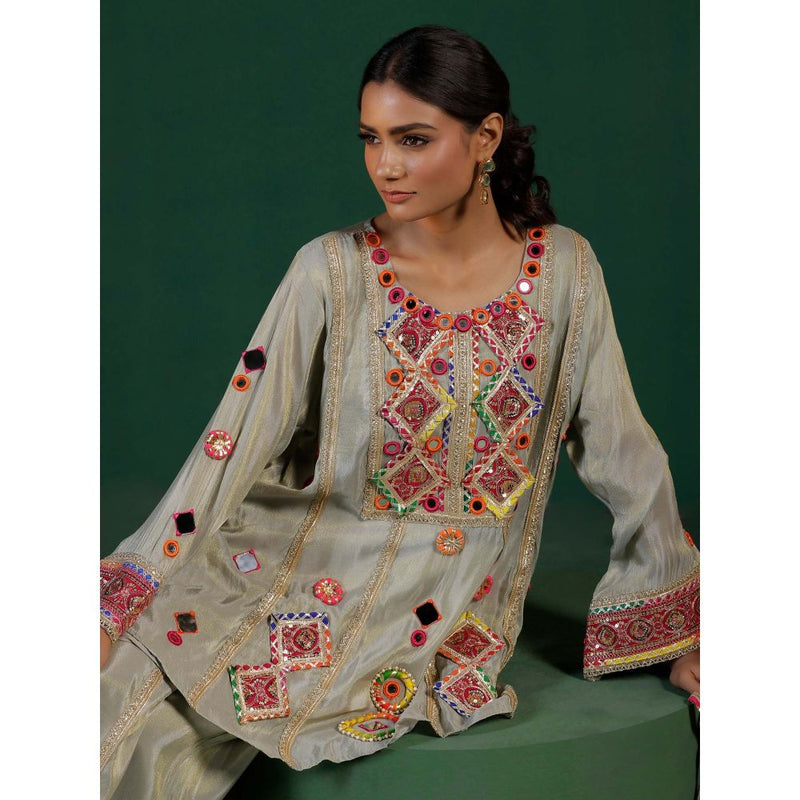 Description : The Banjara Grey Co-Mirror Thread Zari Embroidery Co-Ord