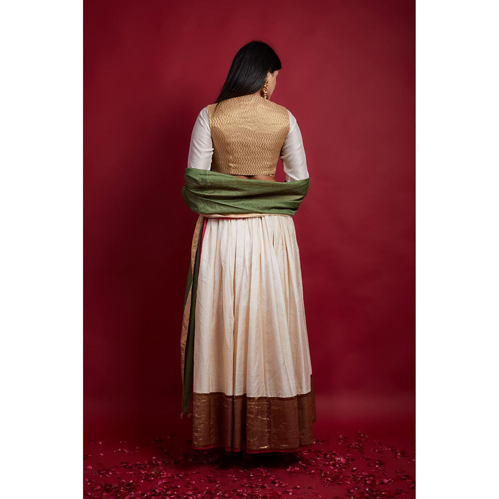 Vinusto Ivory and Gold Chanderi Handloom Lehenga Choli with Koti and Dupatta (Set of 4)