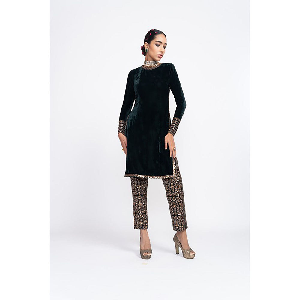 Vvani by Vani Vats Deep Green Velvet Kurta & Pant (Set of 2)