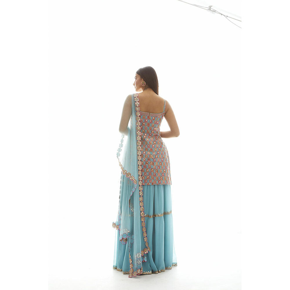 Vvani by Vani Vats Mughal Boota Kurti with Sharara & Dupatta (Set of 3)