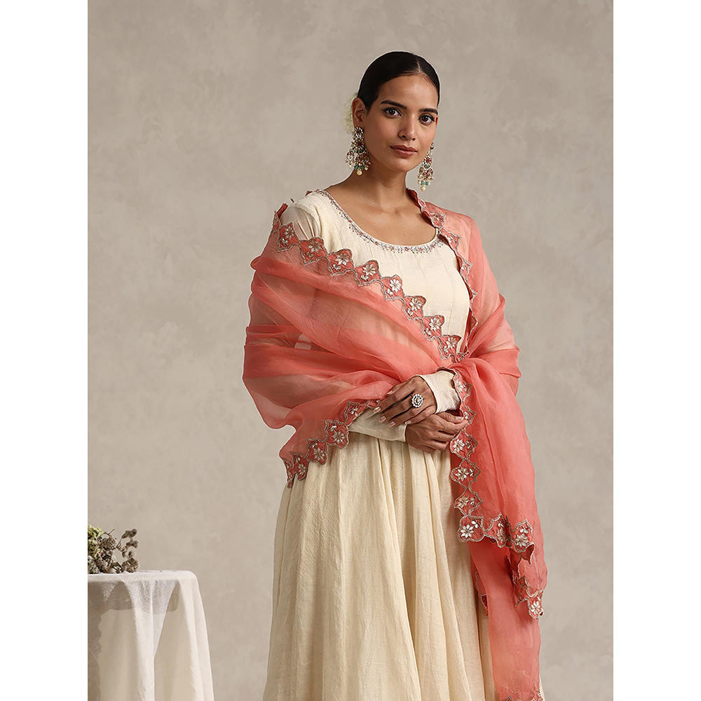 Off White Chanderi Embroidered Anarkali with Churidar and Dupatta (Set of 3)
